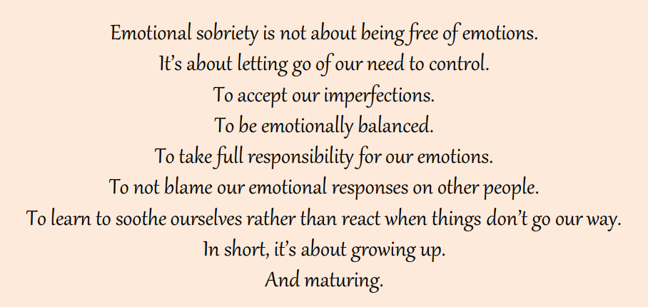 Emotional sobriety is a weighty topic I may cover at a later date, but this paragraph at the start of the book is a good snapshot.